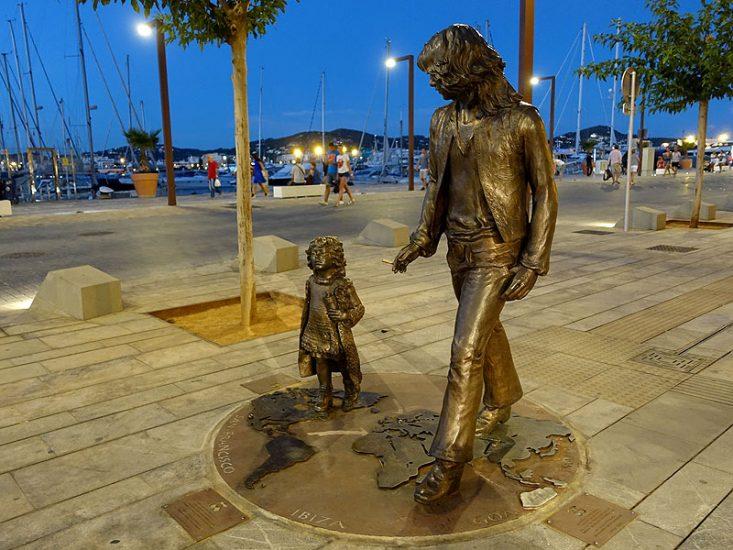En la confluencia entre las calles portuarias Lluís Tur i Palau y Guillem de Montgrí aguarda esta escultura de bronce, inaugurada en el verano de 2016. Deja constancia de la importancia que el movimiento hippie tuvo en el desarrollo de la isla, a partir de los años sesenta del siglo XX.